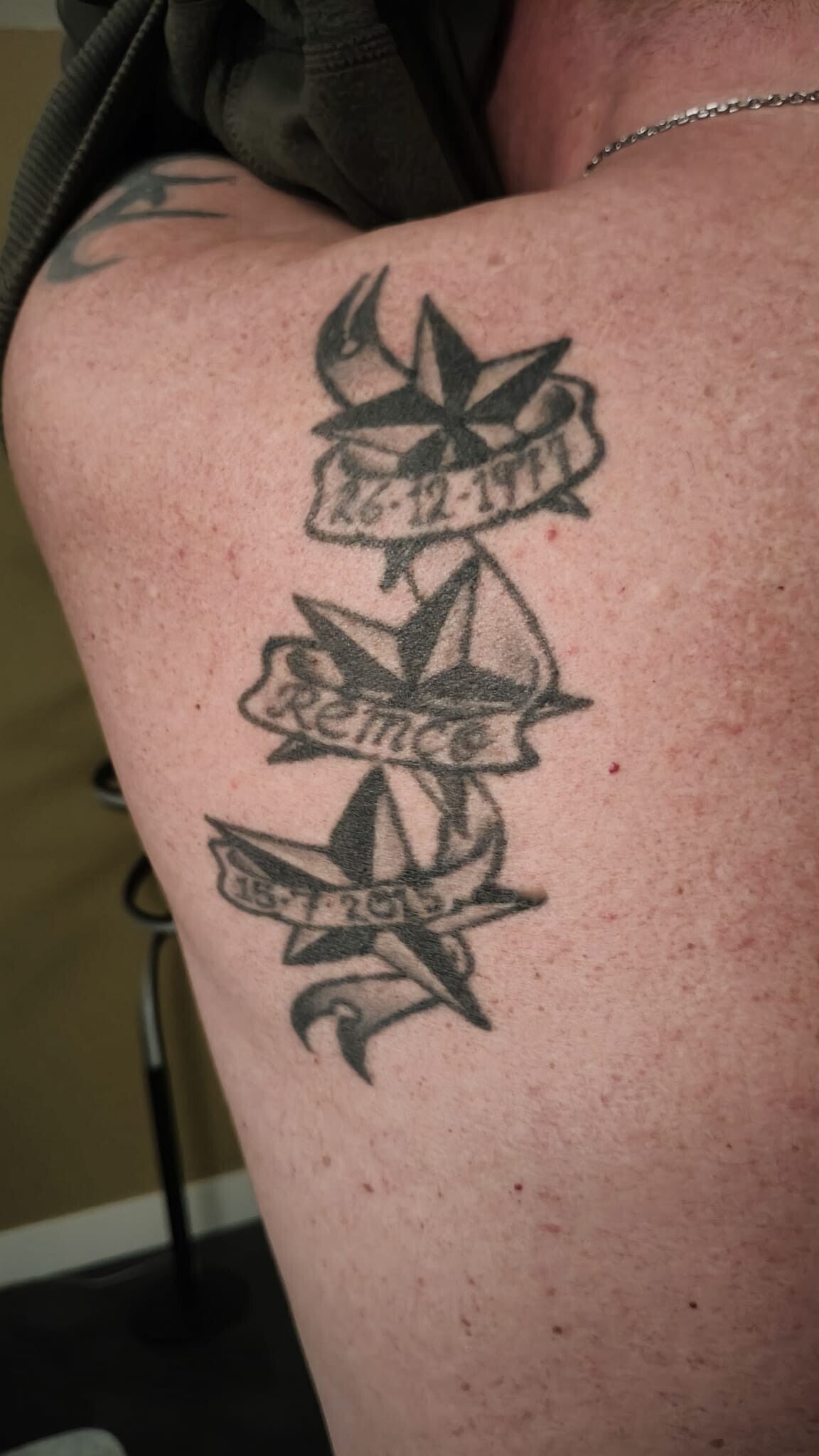 2e foto is een mooie tatoeage op Patrick zijn rug van Remco.